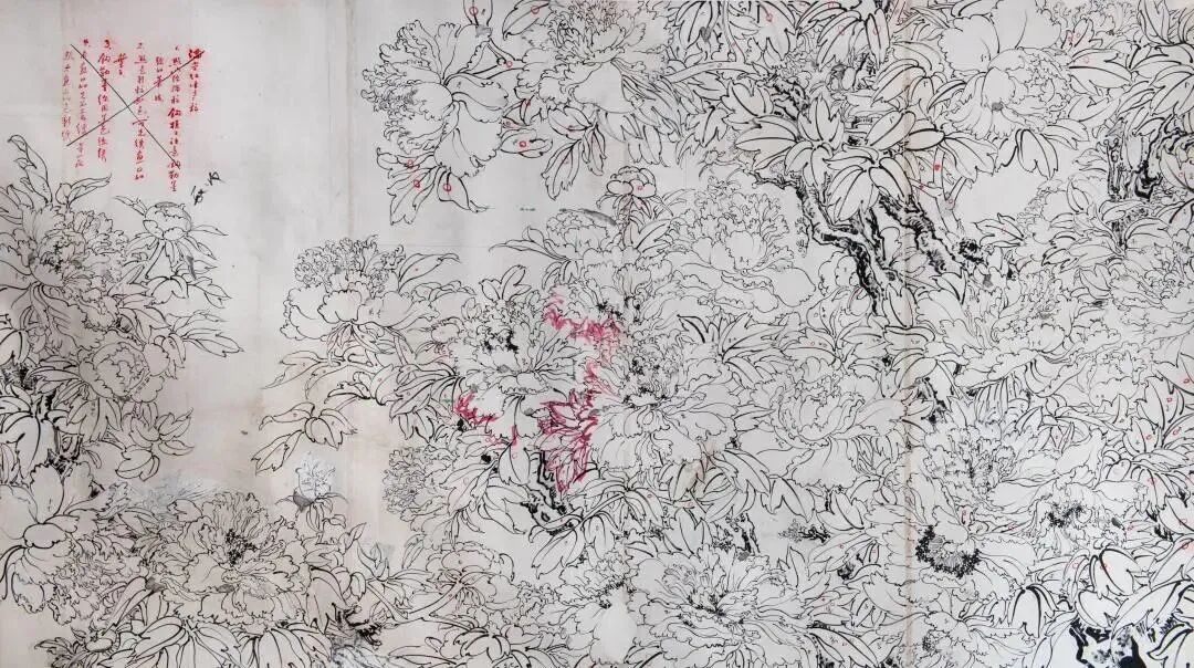 本次展览展出的《满堂红》线描稿是创作完成后的首次展示