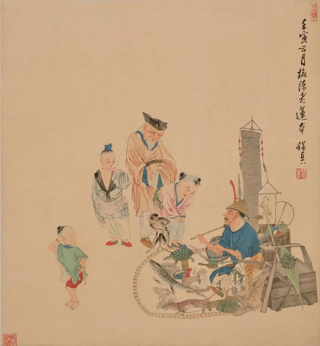 临陈老莲《卖药图》 47x51cm 绢本 1962年
