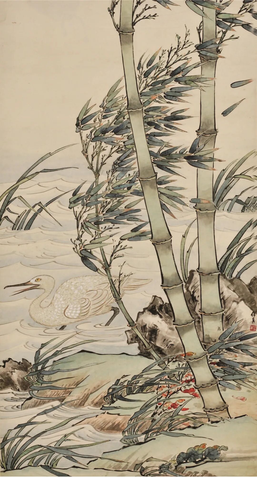 溪边鸣禽临秋风 67.5x131cm 纸本 1963年