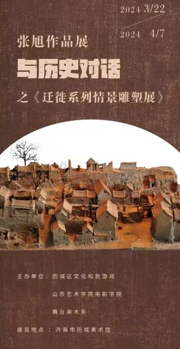 3月22日,由山东艺术学院电影学院舞台美术系、历城区文化和旅游局主办,历城区美术馆承办的张旭作品展《与历史对话》迁徙系列情景雕塑展在历城美术馆开幕,共展出山东艺术学院电影学院张旭老师迁徙系列情景雕塑、绘画作品50余件,此次展览为历城区美术馆开馆来首次雕塑、油画题材艺术展览,充分展示了张旭老师深厚的艺术文化底蕴,作品体现了鲜活的社会画卷,为观众带来了全新的视觉体验。