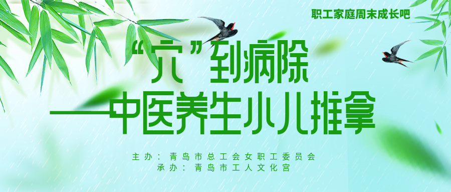 为认真贯彻落实习近平总书记关于工会工作的重要论述,提升女职工生活、工作幸福指数,青岛市总工会致力于打造“周末赋能 工会有约”服务品牌,本周将依托职工家庭周末成长吧,开展中医养生小儿推拿专题讲座,活动内容及报名方式如下:
