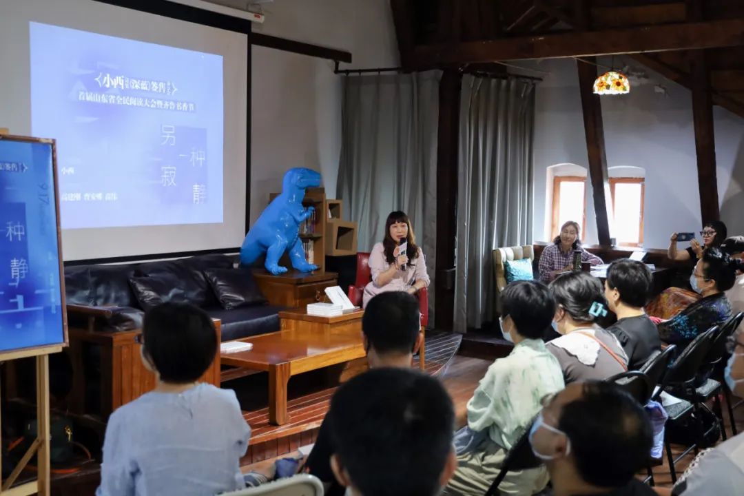 分享会现场,小西表示,诗集《深蓝》主要收录了自己创作于2018年-2021年的诗歌,之所以最终敲定了这个名字,首先是因为,“深蓝”是大海的颜色,是作者地域性的体现,此外,它也是中年的颜色,蕴含了人到中年,对生活和情感的思考,以及内心的独立与自省。谈到自己这些年来的创作历程,小西坦言:“刚开始写诗的时候,就像站在大树底下,写作恰似向上攀爬,到了一定的高度,就会感觉力不从心,往远处看的时候,还会发现更多、更高、更茁壮的树,每棵树都有着不同的姿态,它们会让你思考自己与他人之间的差距,写作的瓶颈期往往也在此时到来。其实瓶颈期并不可怕,可怕的是明明知道自己的瓶颈和差距,还在埋头拼命写,却不懂得停下来反思。”在现代人的生活里,诗歌究竟有什么用呢?小西认为,诗歌就像是高楼大厦之间的植物,是隐秘的、不那么惹眼的存在。但当你出门散步,风吹起柳条,拂过脸颊的那一瞬间,便会触发内心的诗意。“诗歌无处不在,诗意无处不在。诗不在远方,它就在身边。是我们心中最柔软的那个部分。”青岛市作家协会主席高建刚谈到,小西擅长将日常生活中的点滴,自然地转换成个体的诗意。《深蓝》这本诗集,并未被“青岛海”这个意象所束缚,而是充分地发挥了作者自己的诗歌优势。