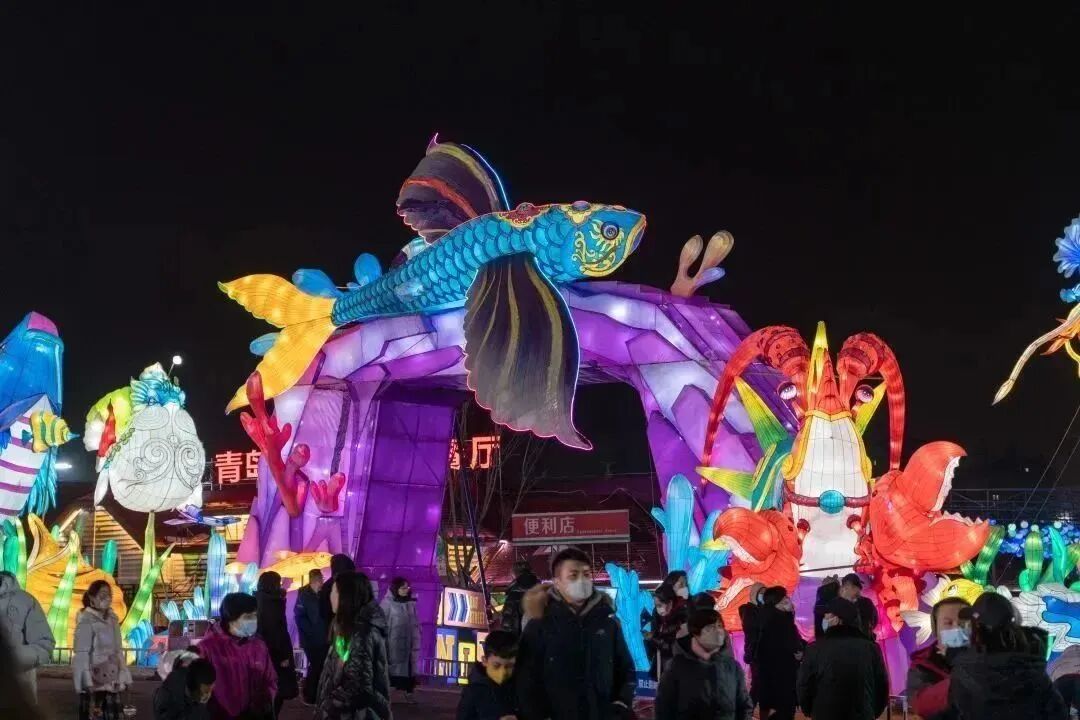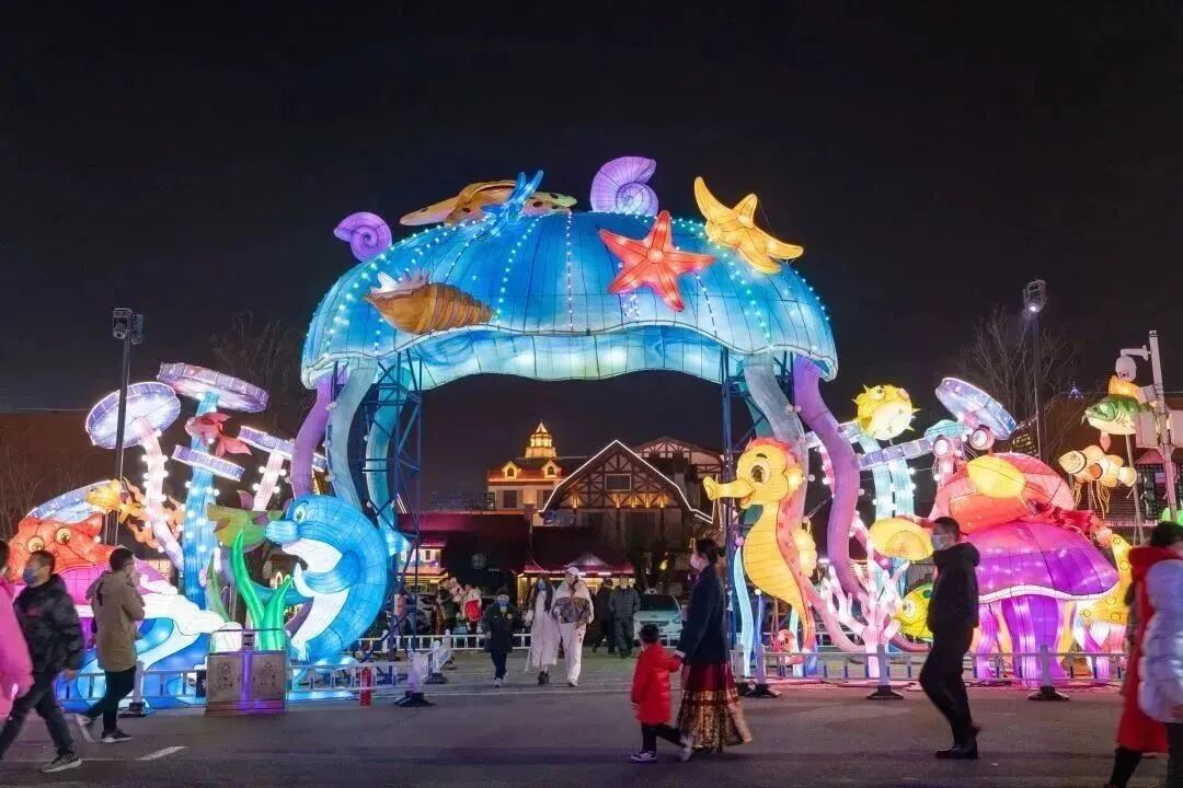 贝壳、水母、海豚等造型的花灯异彩纷呈