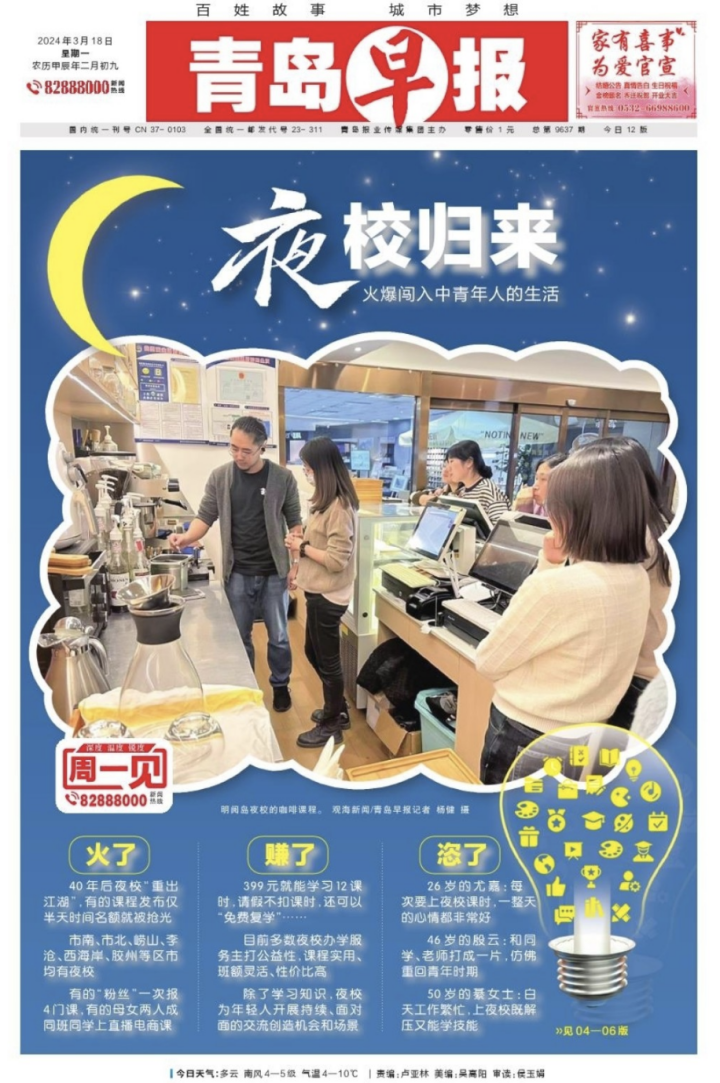 青岛书城·明阅岛夜校刊登在《青岛早报》