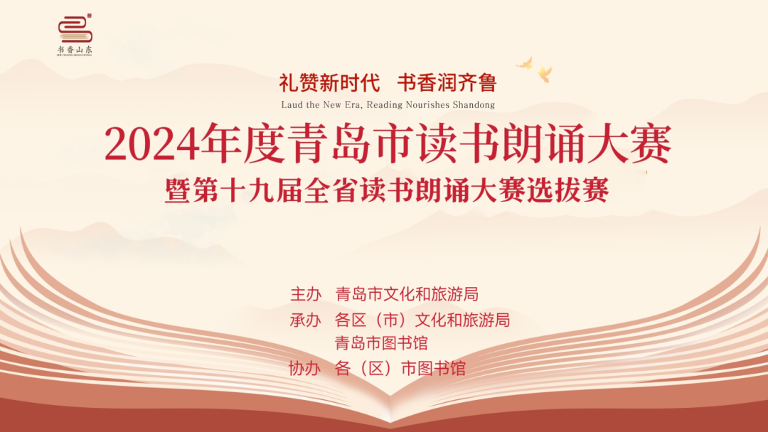 新中国成立的75周年,是伟大的征程,峥嵘的岁月,也是一部波澜壮阔的史诗,更是我们文化自信的坚实基石。书香礼赞新中国,我市特举办“2024年度青岛市读书朗诵大赛暨第十九届全省读书朗诵大赛选拔赛”活动。大赛立足于齐鲁大地悠久深厚的文化底蕴,歌颂七十五载新中国建设的伟大成就与祖国山河的壮丽画卷,奏响新时代华章,展现文化自信。本次大赛由青岛市文化和旅游局主办,各区(市)文化和旅游局、青岛市图书馆承办,各区(市)图书馆联合协办。
