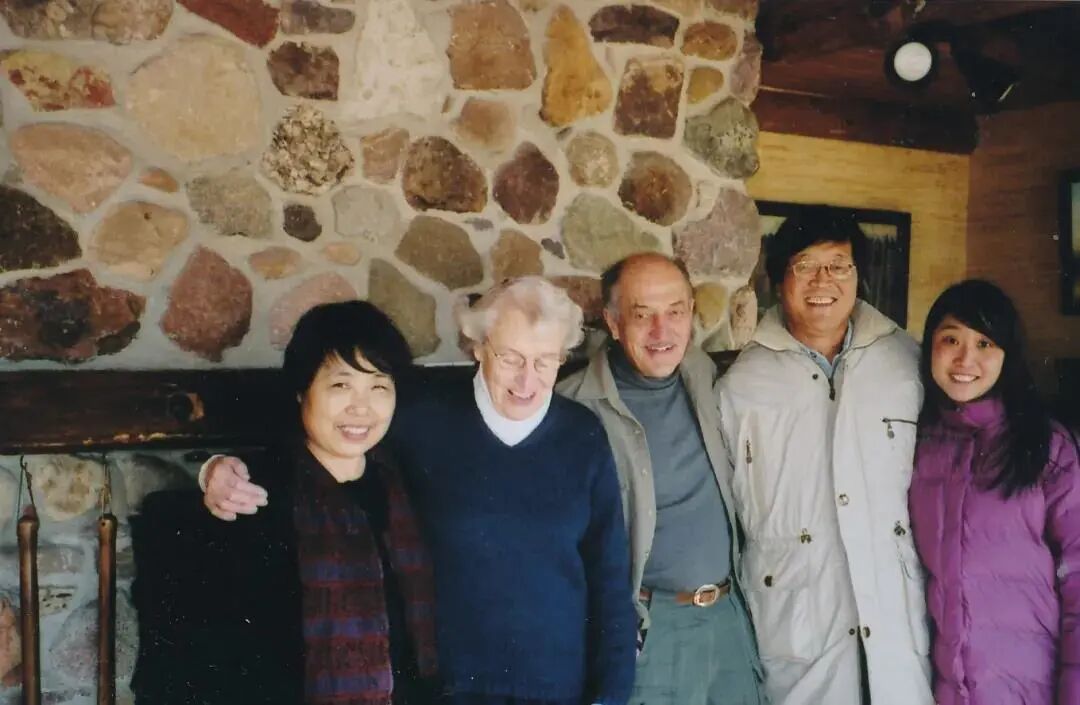 “书中有关回忆的部分,基本上是在2016-2017年之间写下的。我在缅怀过去和对比今日的过程中,产生了很多想法,并且觉得自己应当将这些想法付诸文字,跟如今的年轻人一起分享。事实证明,不光是我的同龄人,我的很多年轻的学生们,都对此很感兴趣。我想,这是因为这本书里所写的,都是真实的体会和感悟。或可说,唯有真实最动人。”作为一位长期从事美国史教学与研究,尤其专注于环境史的著述与翻译的学者,侯文蕙教授也表达了自己对当下时代的看法。她认为,当今的世界变得越来越错综复杂,身处其中的我们,也很难独善其身。在这样的情况下,更应该用一种平和的目光去进行审视和表述。她感慨地表示:“过去时代的人们,没有现在的生活条件,但他们仍然能够过得非常快乐,我觉得,人们越是生活在简约的时代,生活和思想就可以越纯真、越向上。”侯文蕙教授于不惑之年前往美国后,才开始研究自然环境史。她谈到,这一学科是上世纪七十年代以后才出现的,也即是美国经历了战后各种社会运动的动荡之后,才生发出来的对环境的思考。“以前的历史学,都是以政治或经济为主题来进行判定研究的。之前我们也常说,人类的历史是一部阶级斗争史。但自然环境史所探究的,是人和自然之间的关系,是人对自然的影响,和自然对人的影响。研究这门学科的前提指导,就是人和自然的整体性。生态伦理学对自然环境学的重要性,不言而喻。所以我一下子就被这门学科深深地吸引了。也就是在这个时候,我第一次接触到了《沙乡年鉴》。”侯文蕙教授谈到,《沙乡年鉴》的作者奥尔多·利奥波德,原本的职业是林业家,但他在跟土地打交道的过程中,发现了种种人为弊端,并在长期的工作和观察中,将这些弊端和自己的感悟写成了文字。侯文蕙教授花了一年的时间,将《沙乡年鉴》翻译成中文,这也是她的环境研究史之路的开端。左起:侯文蕙教授,《沙乡年鉴》作者利奥波德之女尼娜、之子卡尔,侯尚智教授、之女侯深。( 2002年冬摄于尼娜家中)“《沙乡年鉴》在中国国内的出版,是一个漫长而曲折的过程,我在译后记和《松庐散记》中都有提及。但随着时间推移,这本书从冷门到热门的演变,也体现了中国人环境意识的日益增强。我们的国民需要这样一本著作,来引发更多的思考和行动,但将来的环境保护之路,仍然是任重而道远。”西方的宗教信仰,将自然放置在为人类服务的定位上,而人类所要做的,是征服和改造自然。在中国古代,虽有“天人合一”的说法,但并非用科学的眼光去看待人与自然的关系,仅仅象征着中国传统文化对人的精神修养的理想追求。那么在当下,我们又该如何来认识我们与自然的关系?对于这个问题,在《松庐散记》里,侯文蕙教授写下了很多相关的思考。而本书封面上,仅仅以一簇松枝,来呈现“松庐”的意象,也是美学意义的直观呈现。内蒙古教育出版社编审、《纸阅读文库》主编黄妙轩远程赶来参加本场活动,他首先从出版的角度谈了对《松庐散记》的感悟——“这本书的封面,用灰色和绿色的设计,突出了草原人的生态理念,同时也反映了图书的性格与气质。”