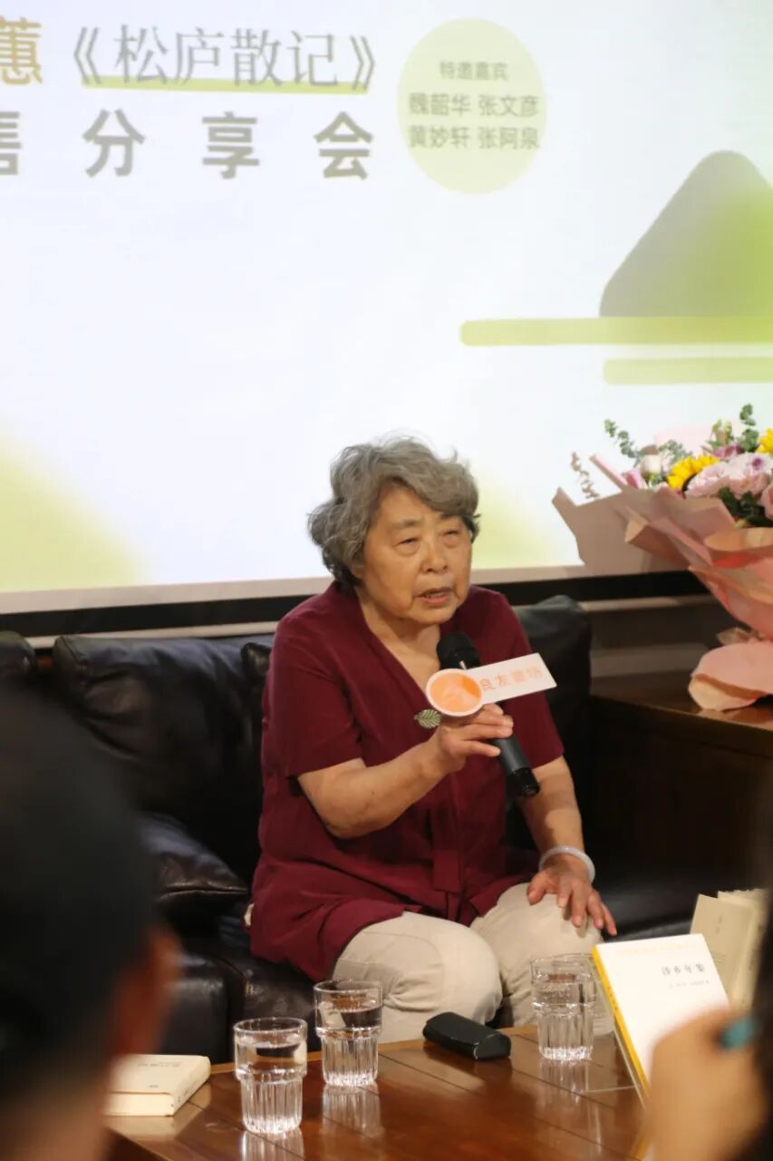 《松庐散记》是侯文蕙教授近期出版的随笔集。在活动现场,她表示:“打开《松庐散记》的扉页,可以看到一句题签——献给我的父母。这是永远无穷的怀念。我的父母都已经过世很久了,而我今年也已经八十岁了,回顾我这一生,从求学到谋生,一直到现在,父母永远是我心目中的丰碑。”