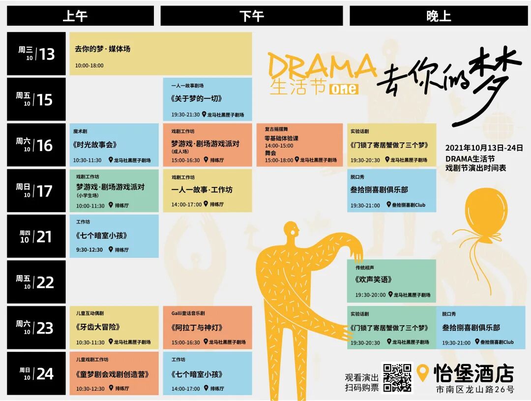 Drama 生活节除了散落在各个空间的艺术展览之外,更是一场文艺青年们的观演盛会,十天16场演出及工作坊,具体排期和演出场所,详见下表。
