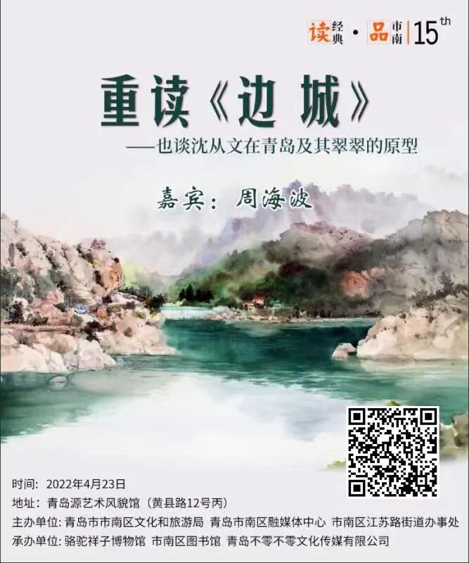 本期活动在充分发挥阅读对群众文化熏陶和认知实践养成方面重要作用的基础上,选取了在青岛文化历史上影响巨大的沈从文先生及其代表作《边城》,邀请青岛大学文学与新闻传播学院教授,国家社科基金重大项目首席专家周海波老师,从有关材料的考论出发,追寻沈从文创作《边城》的有关问题,如翠翠的原型、《边城》的艺术理解等,深度解读作家和作品与青岛的渊源,纠正了沈从文在青岛的诸多史料存在问题。