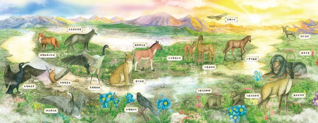 草盛、花艳,开阔坦荡的三江源上,昂扬舒展的动物们演绎着独属于它们的故事。不论是岩羊和猞猁之间跨越物种本能的生死之交、小黄马和藏獒之间石头一般坚固的友谊、红嘴鸦甘愿放弃原野和自由的无条件之爱,还是表现在斑头雁大叔、大灰狼、红狐狸身上的温柔与赤诚、善良与坚定、聪慧与果敢,在《三江源的扎西德勒》中,杨志军的写作都表现出一种“爱人类多少,就应该爱动物多少”的态度。大笔墨叙写动物之美,是小说的另一明显特点,书中先后提到的动物几近二十种,它们有思想、有情感、有本领,有着超乎人们想象的精灵之奇。在这样一部人文主题的藏地小说中,杨志军写出了超越多数动物题材小说的精彩和灵动。惊、喜、怜、爱间,有一种强烈的感受:作为一部儿童文学作品,很大程度上,是杨志军和笔下的动物一起完成了小说的儿童性书写。一方面,人的年龄越小距离大自然就会越近,本能地会对灵动有趣的动物产生异乎寻常的亲近感,书写藏地以充满情感地笔触大篇幅呈现在地动物世界,贴合儿童在审美需求上的好奇。另一方面,在精湛的手法表达之外,是所有自然流淌于心间的共情为完美的文学想象做基底。曾亲历工作、生活四十多年,杨志军对藏地自然风貌和人文图景都充满真挚的情感,这种情感集中到他对每一种动物的描写中,每一段故事每一个情节都笼罩着温情,字里行间充满着童趣的喜人的诱惑。比如,他写红嘴鸦阳阳和金雕小白之间的友谊,就像写两个顽皮男孩之间的日常,充满着争风吃醋、本领比试和写满骄傲与自尊的行为日常;比如,他写赤麻鸭丢丢拒绝被送走自行飞回救助站对着小海呀呀呀地叫声里,就像在写一个小孩面对忽然丢下自己的妈妈充满委屈的埋怨……人与动物之间是可以建立血肉相联的亲缘关系的。“虽然动物不能像人一样,把它们心里想的用语言表达出来,但它们每一个异样的举动,都代表着它们的感觉,不会省略,也不会多余”,小说借小海和爸爸的对话写出了很多为动物发声的片段,抒发悲悯情怀的同时,呈现对打破固有观念的启发,或是另一表达所指。大灰狼星宿海的出场和离开,是小说所有动物中带给我最大情感触动的角色。不仅是因为它在营救爸爸这件事上所起到的关键作用,也不仅是因为在人类选择放弃的时候是它坚持带来了奇迹,更多的是我在阅读过程中反复问自己:“你会相信一只狼吗?”杨志军用充满力量的文学情境,呈现了一个打破人们对“白眼狼”固有认知的思索契机。这只是其中一个,引发价值观发蒙与思索的内容,在文中还有很多。短暂的阅读体验里,很难说清楚一本书到底能带来什么确切的给养,但只要是好的内容定然会有激荡情绪感知的魔力。读杨志军笔下的三江源动物和人的故事,确有一种震撼留心底。这种震撼,贴合着自然的脉络,又事关生命的渴望,是一种大似无止境但又细至心间的微妙存在。